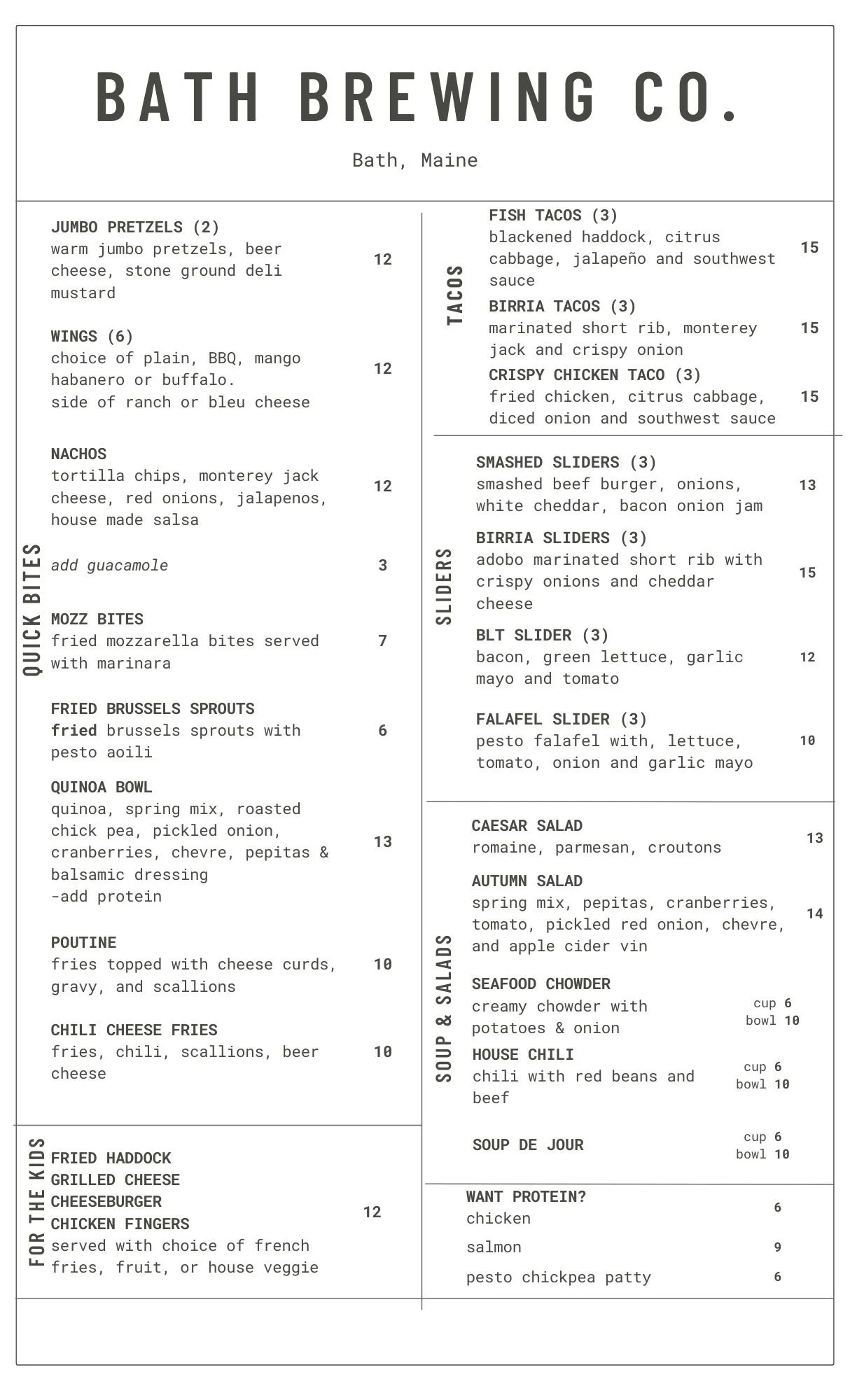 Our kitchen is influenced by the coast, the seasons, and by the tradition of the neighborhood brewpub being a gathering place to share a great meal and raise a pint with friends.